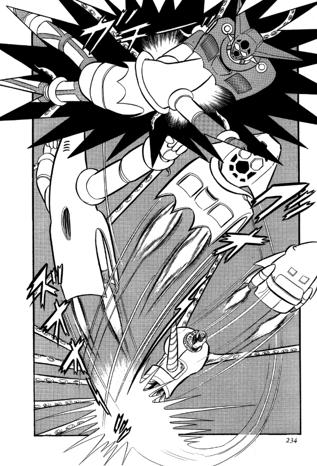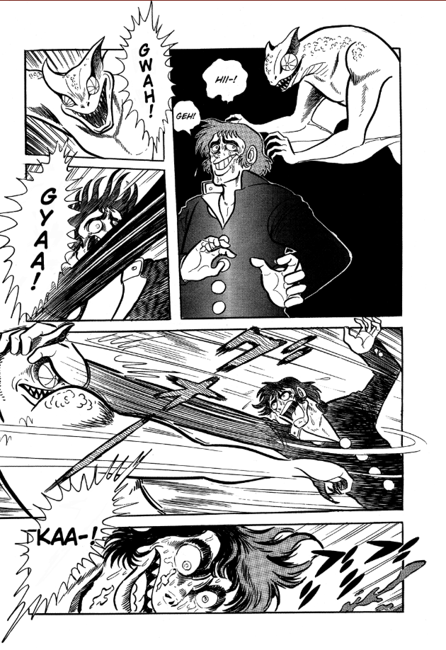 Getter Robo je právem považován za jeden ze stavebních kamenů moderního mecha žánru. Vděčit mu můžeme za popularizaci konceptu robota složeného z několika menších robotů (pokud jste viděli Voltrona, Strážce vesmíru nebo kilotunu dalších výtvorů japonské popkultury, tak víte, o čem mluvím). Tato sága je výsledkem spolupráce Gó Nagaie, který přišel s námětem (a znělkou pro původní anime seriál) a kreslíře Kena Ishikawy, který stojí za vším ostatním. Ishikawa bohužel podobně jako mecha žánr celkově, k opomíjeným mistrům svého umění. Původně jeho kresba byla výrazněji inspirována Nagaiem. Postupně si ale pak našel svůj styl a hlavně pak jeho psychadelické dvojstránky jsou vskutku něco úchvatného. Přestože se technicky jedná o shonen, komiks je plný násilí, krve, useknutých hlav a strašlivých příšer. Například scénu s laboratoří, kde Reptiloidi testují choroby na uvězněných ženách a dětech, by cenzura v dnešní shonen manze jen tak nepovolila. Manga původně vznikla jako doprovod k anime seriálu, ale nutno dodat, že fanoušci výrazně preferují mangu, což se pak následně bude opakovat pro seriálové adaptace následujících částí. Ano, čtete správně. Tato manga je začátkem několika dílné epické ságy a pokud vám bitky obřího robota s dinosauřími superkyborgy přišly jako něco cáklého, tak následující části se vám také budou líbit. Avšak to je téma pro jiný článeček.