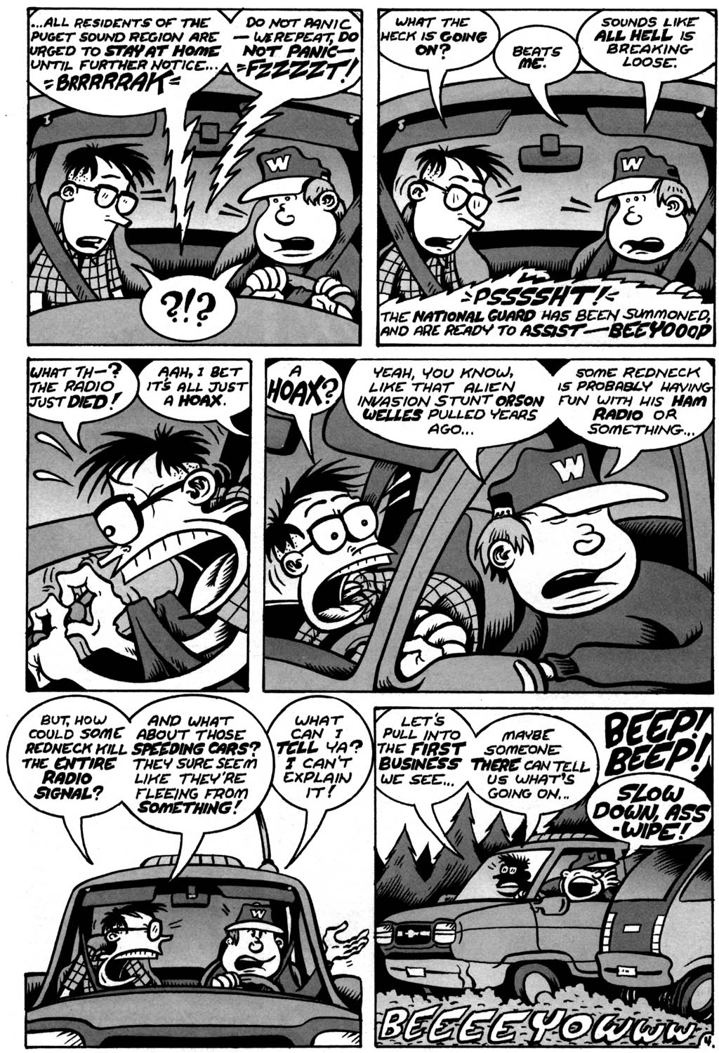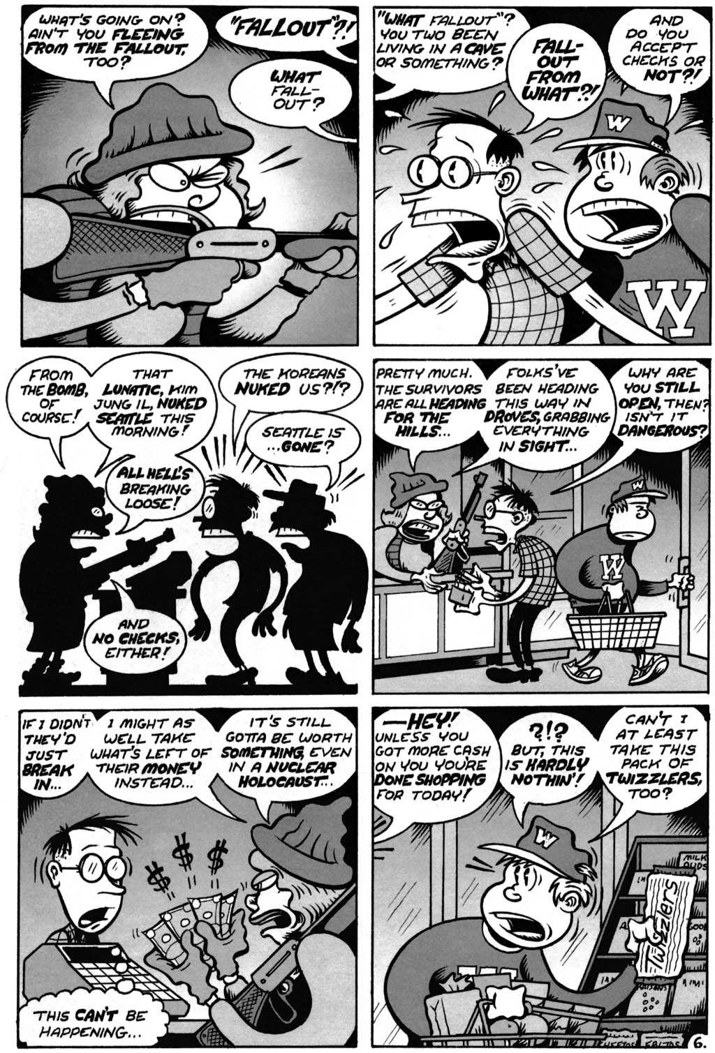 Perry a jeho kámoš Gordo se vrací domů do Seattlu po týdnu uprostřed hor. K jejich překvapení potkávají kolony aut jedoucích ze Seattlu pryč. Na blízké benzínce se dozví důvod. Severní Korea shodila na Seattle atomovku a tak je z města jeden velký doutnající radioaktivní kráter. Dvojice rychle doplní zásoby a mizí zpátky do hor, kde přemýšlí, co dál. Jasně, mohli by přežít sbíráním bobulí a lovem místní zvířeny, jenže to jim dlouho vydržet nemůže. Navíc co budou dělat, až jejich útočiště najde někdo, kdo se s nimi o zásoby nebude chtít dělit? A tak se kancelářská krysa Perry a jeho oportunistický kamarádíček Gordo budou muset potýkat se vším možným od indiánů, po fanatické feministky a hlavně pak s oportunistickými přeživšími, kteří nebudou mít problém podřezat jim krky pro flašku limonády.