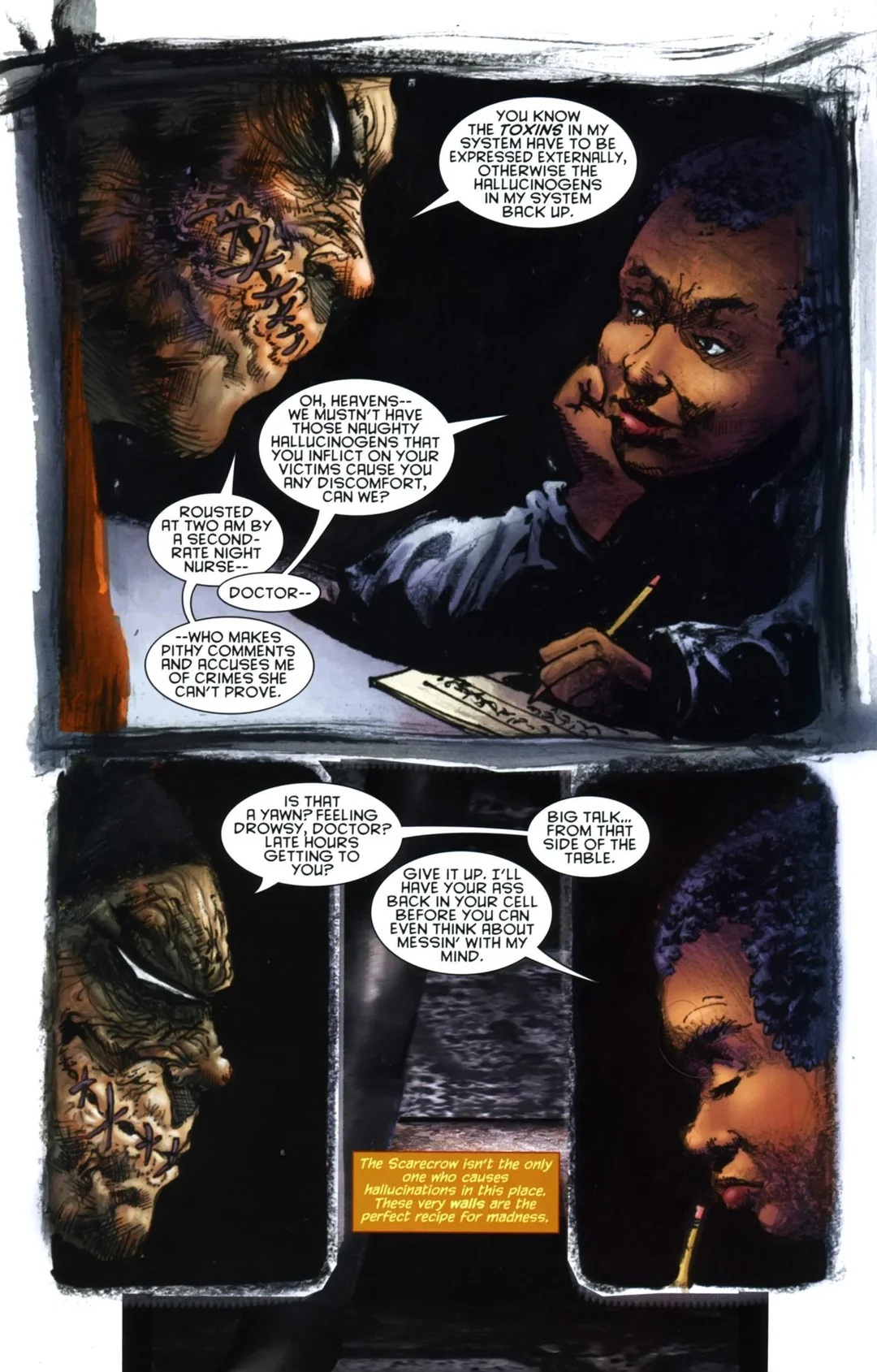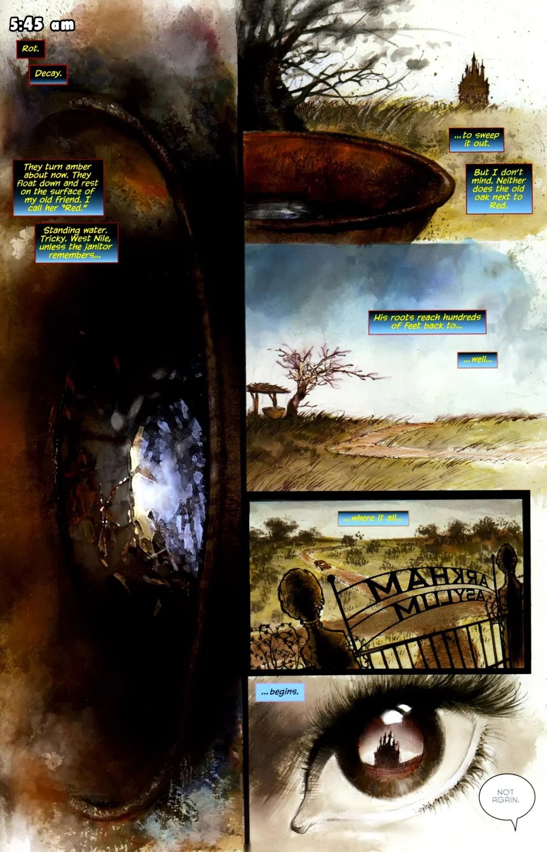 Arkham Asylum: Madness popisuje příběh dvacetičtyřhodinové směny zdravotní sestry v tomto pochmurném domě v pochmurném světě. Potkáváme se tak postupně se všemi zaměstnanci tohoto ústavu od údržbářů, přes sekuriťáky až po hlavního doktora a sledujeme, jak působí prostředí blázince na jejich psychiku. Nervozita, neustálé napětí, nepříznivé prostředí, to vše působí jako kapající voda na kámen lidské psýchy a tak i podivné tikání hodin dokáže vyvolat velice neurotickou reakci. Není divu, že se tam sestry střídají jak na běžícím pásu. Klidu nepomáhají ani historky šířící se mezi zaměstnanci, jenž se týkají asi nejznámějšího pacienta, či kanadské žertíky místních strážců…