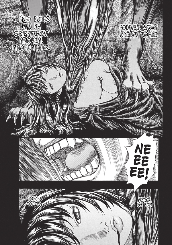 Guts se vydává na cestu do Elfhelmu, ale postupně mu docházejí síly, protože musí každou noc chránit Cascu před příšerami. V temné chvilce se pak vůči Casce zachová způsobem, který jejich vztah zásadně poznamená. Avšak ve chvíli krize se objeví nečekaní hosté! Griffith mezitím vede svou novou armádu proti kushaanským nájezdníkům a konflikt nabývá na síle.