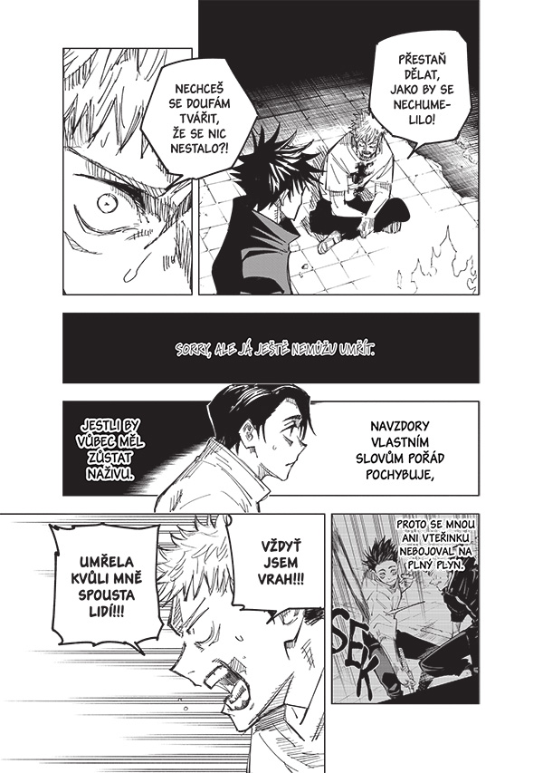Itadori se po prohraném souboji s Okkocuem, který byl pověřen jeho popravou, potácí na pomezí života a smrti a hlavou se mu honí dávné vzpomínky na rodinu. Jak se v nich ale ocitla jedna z předchozích podob proklínače známého jako Noritoši Kamo?