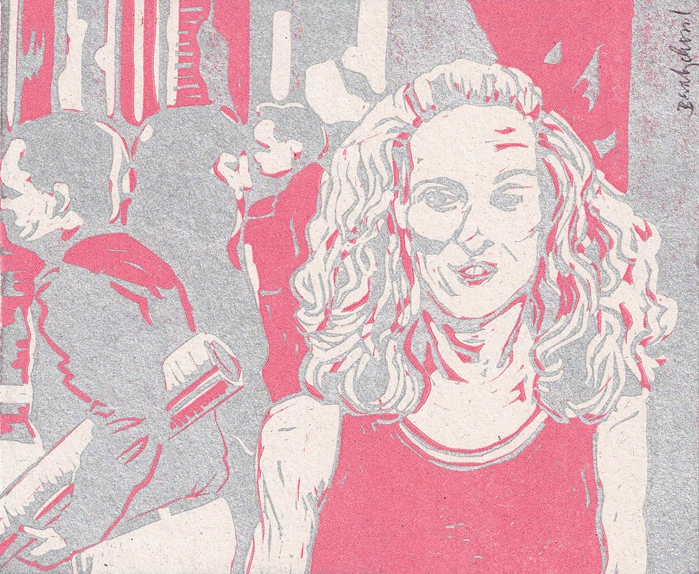 - dvoubarevný linoryt (růžová a stříbrná)