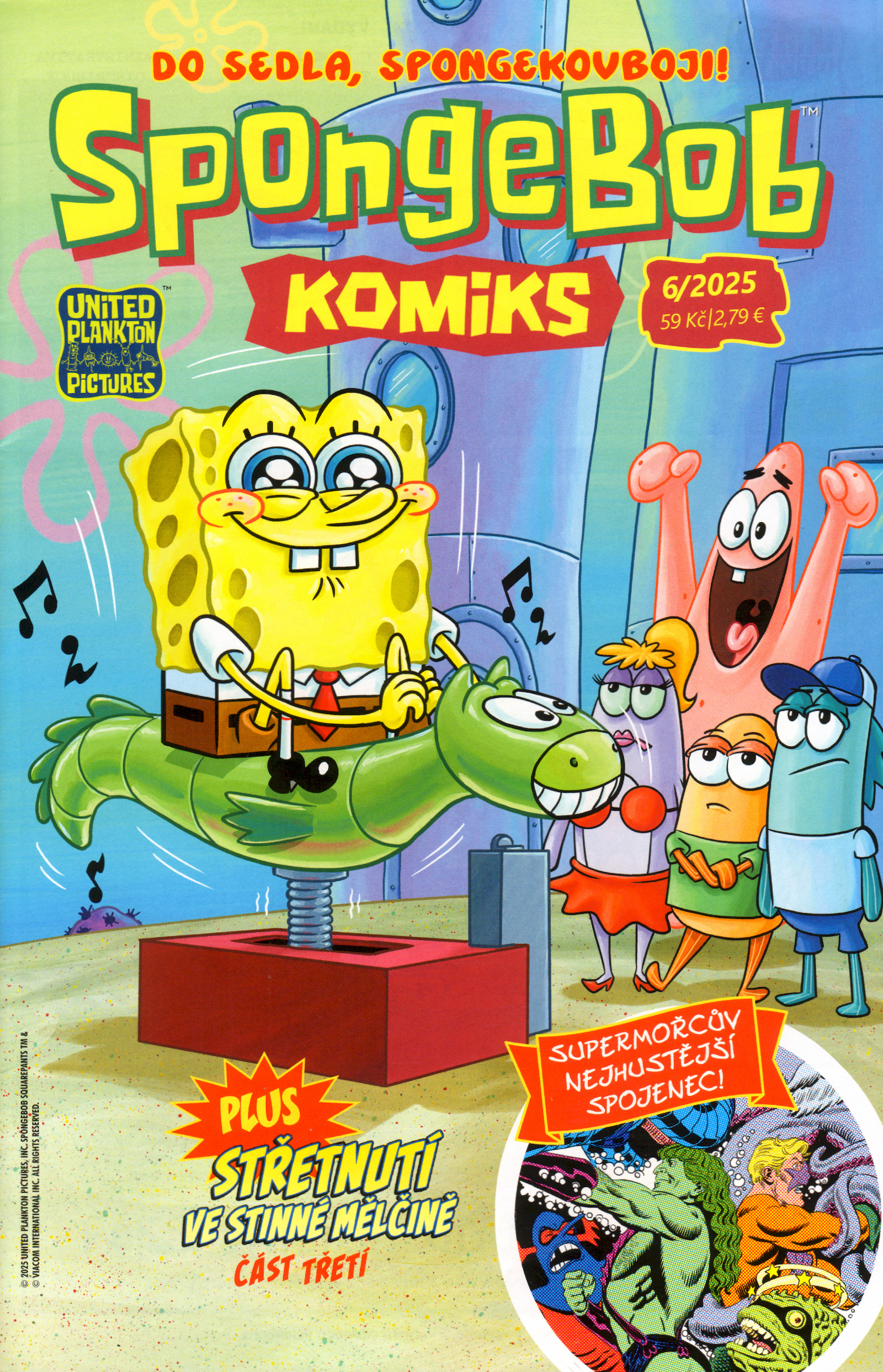 Do sedla, SpongeKovboji! Na SpongeBoba čeká dramatické a záludné setkání s mechanickým hřebcem! A pokud by vám to připadalo málo, máme pro vás připravenou také podmořskou ságu - "Střetnutí ve stinné mělčině".