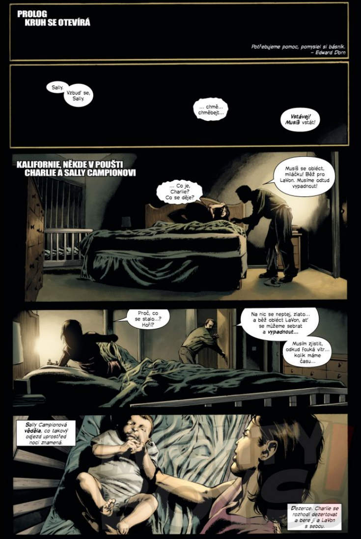 Nejlepší na tom komiksu jsou ale postavy. Asi všechny hlavní postavy, a je jich zde dost. Stephen King je napsal do neuvěřitelné hloubky a postupně je rozvíjí. Místy to až překvapuje, kolik péče každé postavě věnoval a jak skutečně působí. V komiksu je spousta textu vypravěče, ale dá se to odpustit a pochopit, protože bez toho by nešlo jít do takové hloubky a takových emocí, a to by byla škoda. Celkově ten svět působí hodně komplexně a já jsem si ho náramně užil. Původní Kingův román jsem nečetl, ale na adaptaci scénáře odvedl Roberto Aguirre-Sacasa zatraceně dobrou práci.