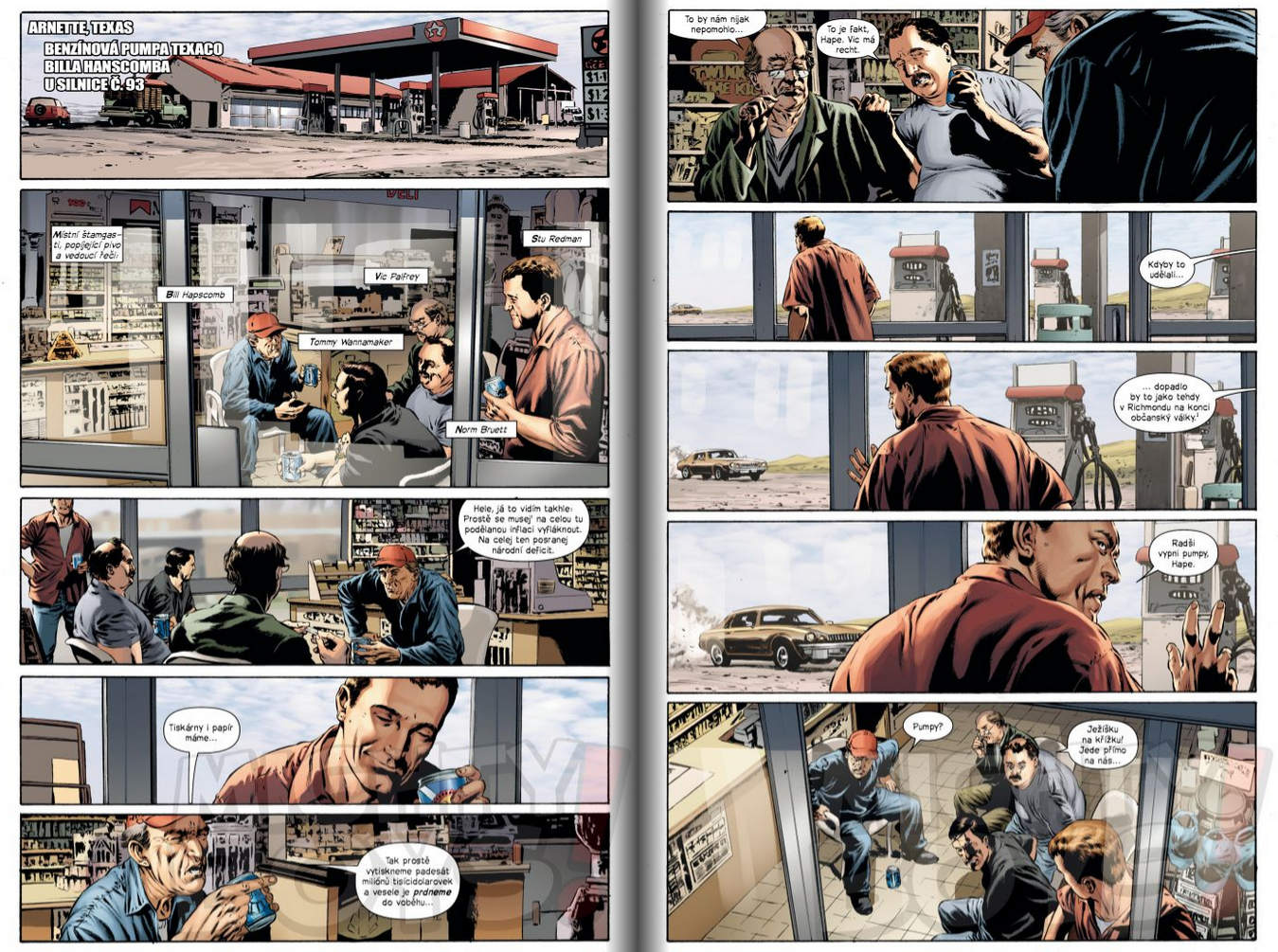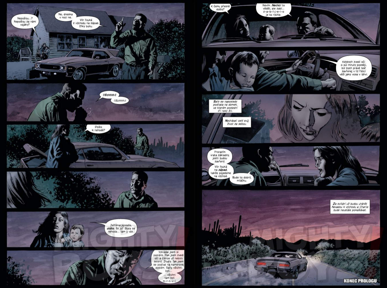 Musím sa priznať, že známu knižnú predlohu od Stephena Kinga som nečítal a možno to bude znieť čudne, no som za to nesmierne rád. Nechápte ma zle, Stephena Kinga mám rád a čítal som od neho viaceré kratšie knihy. Tým dlhším som sa celkovo jednoducho radšej vyhýbal. Takto som si však mohol užiť tento komiksový skvost bez toho, že by som vedel čo sa bude diať alebo ako to celé skončí. Nepredvídateľnosť príbehu je tu veľmi silná a ja som čítal viaceré scény so zatajeným dychom. Má to veľmi silné a rozličné charaktery postáv, ktoré bojujú aj so svojimi vnútornými démonmi. Niekde som čítal, že príbeh je tak dobrý, ako je dobrý jeho záporák. Tu to platí maximálne a Randall Flagg má hneď niekoľko mrazivých scén. Celkovo to má minimum akcie, ale napínavé je to už len tým, ako sa ktorá postava rozhodne, čo spraví a podobne. Veľmi kvalitný je aj vizuál komiksu, farby, perfektne zvládnuté postavy a ich emócie. Musím pochváliť znovu aj spracovanie knihy a Mighty Boys prinášajú aj poriadnu dávku pekných bonusov, či už sa jedná o veľkú porciu obálok, máp, nafotených reálnych lokácií alebo prvotné a výsledné skice. Jednoznačne jeden z komiksov roka! Perfektné! A ešte aby som nezabudol, má to dokonalé cameo Stephena Kinga! =►Celá recenzia◄=