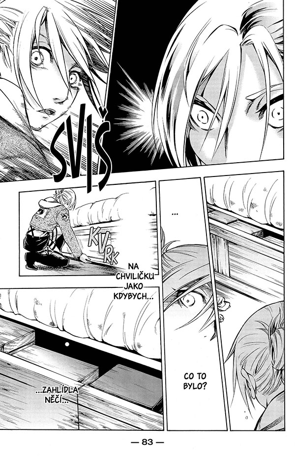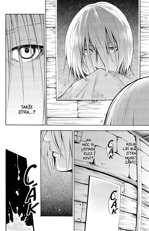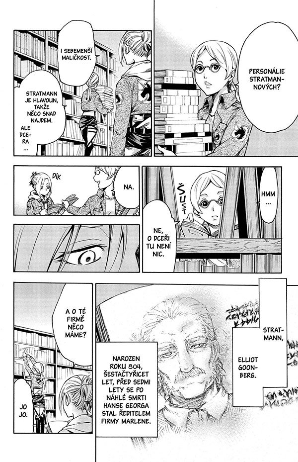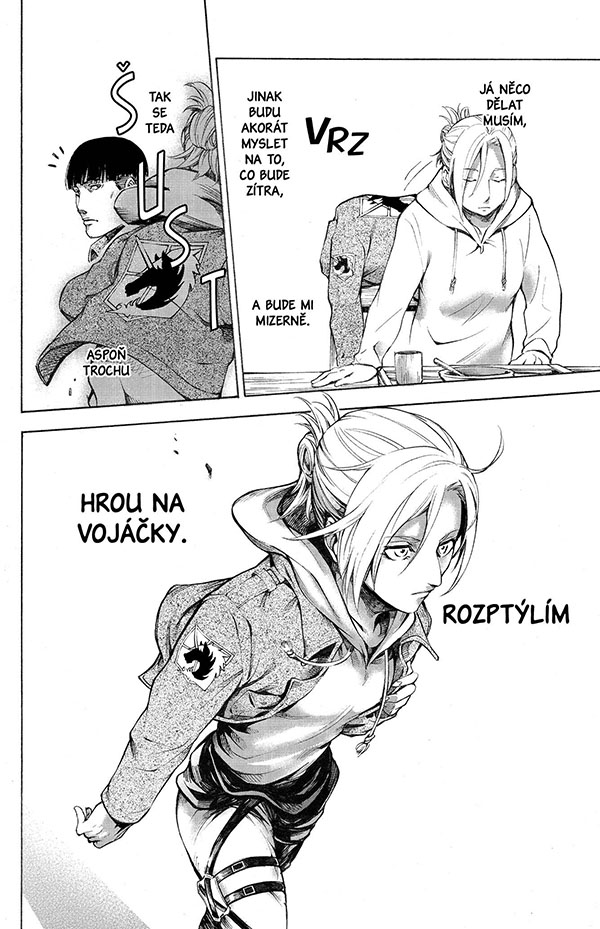 „Zítra, až se Průzkumníci vydají na svou 57. výpravu za Zeď, splním svou povinnost a polapím Erena Yeagera.“