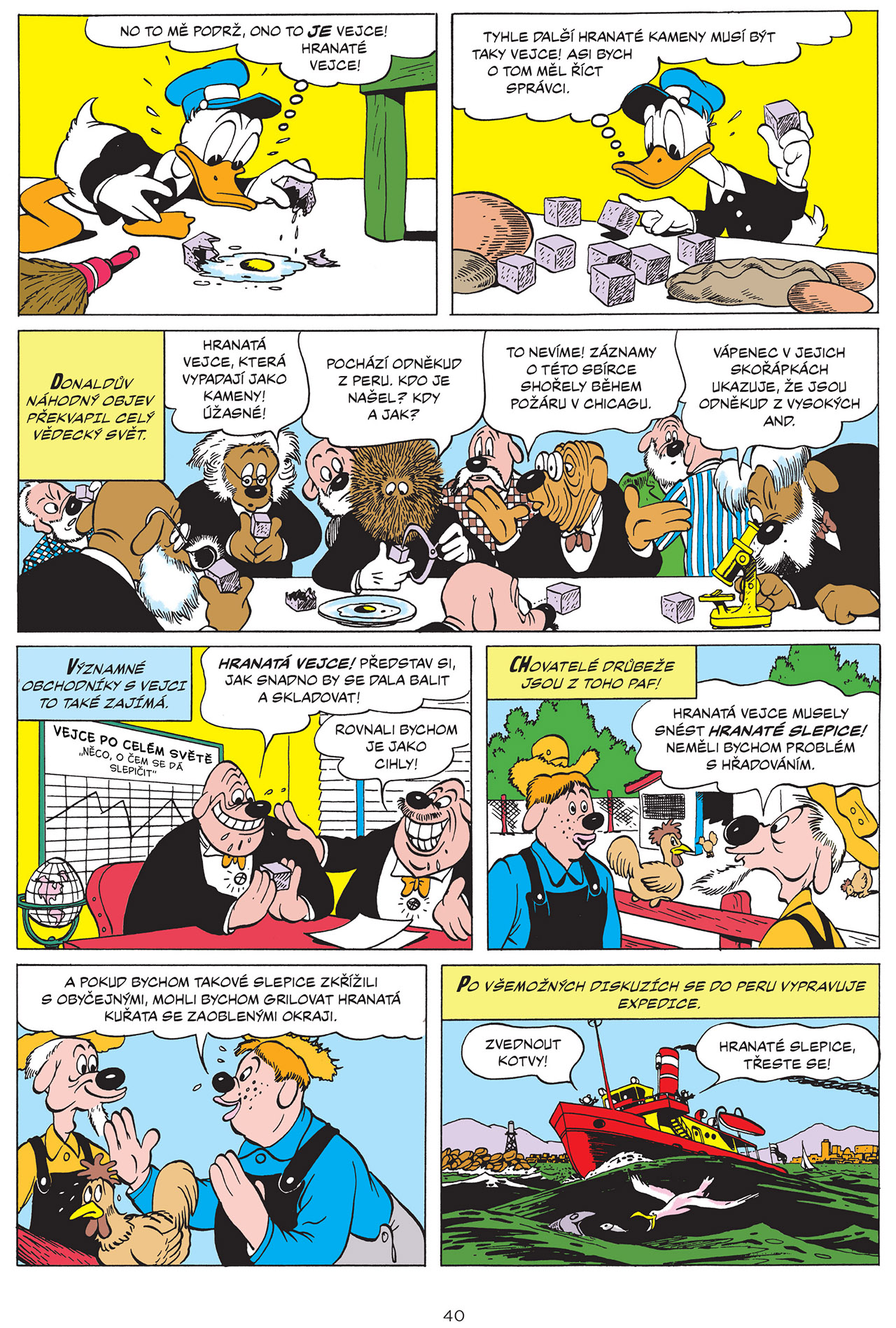 Klasické komiksy z pera Carla Barkse. To je super, včetně příběhu o hranatých vejcích, na které odkazuje i Rosa ve Skrblíkově Životě. Předmluvy se ujal člověk povolaný...Černodan, o to více mě mrzí, že "outside the box" přeložil jako "myslet mimo čtverec"...jasně, že přenesený význam zůstává totožný, ale spíše bych to přeložil jako "myslet mimo krabici/bednu"....prostě vně trojrozměrného objektu než plochého čtverce. :-)