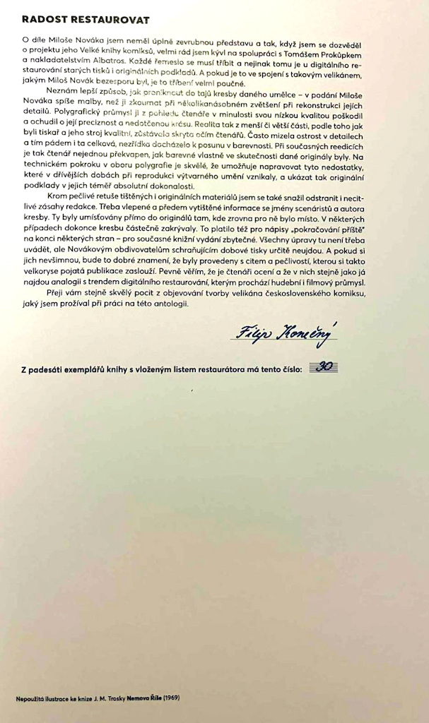 U většiny prací se přitom podařilo dohledat originály, a tak budou vytištěny v kvalitě, jakou nemělo ani jejich první vydání. Knihu doprovází podrobný a bohatě ilustrovaný doslov komiksového historika Tomáše Prokůpka, který publikované příběhy zasazuje do kontextu autorovy tvorby i širších dobových souvislostí.
